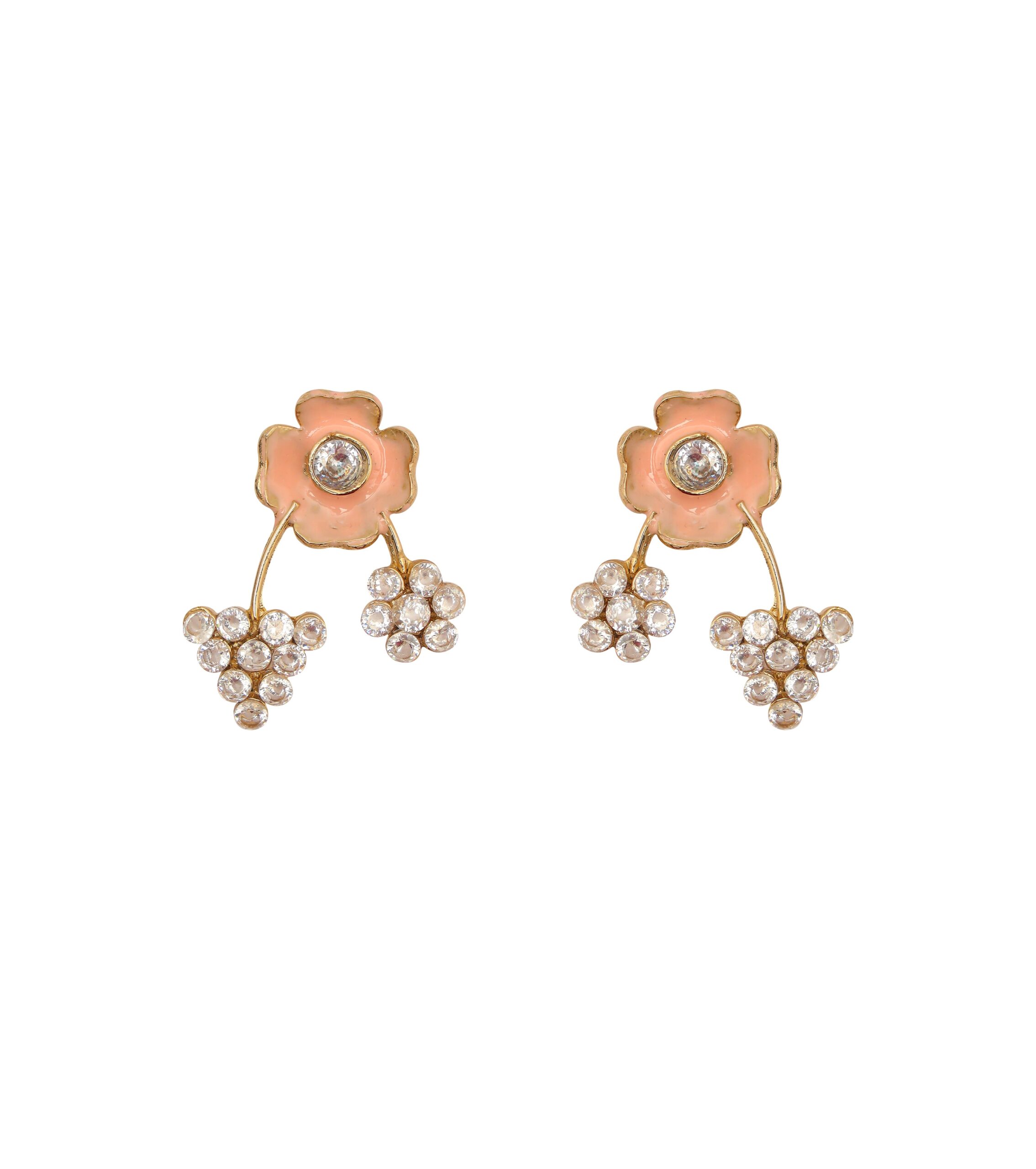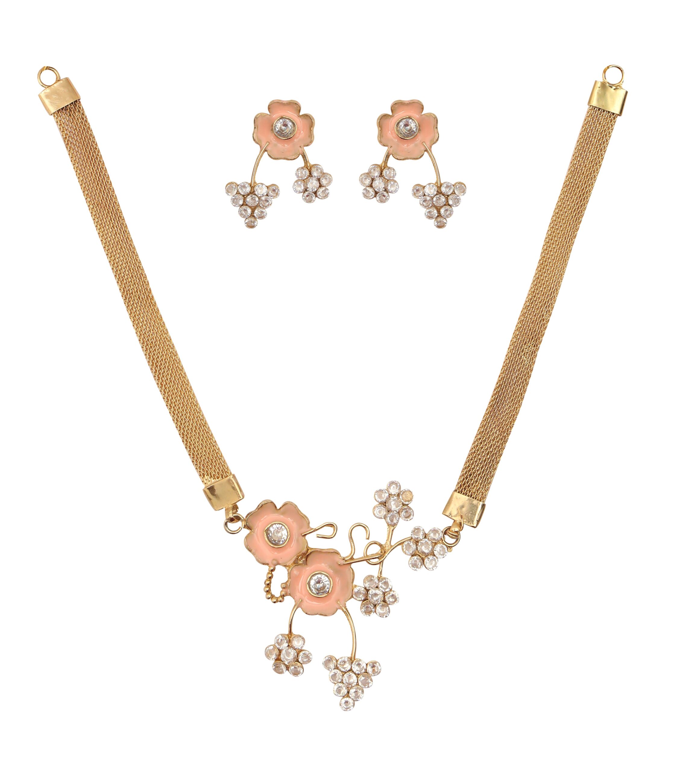 Pink Meena colored flower themed gold-plated long necklace & earrings