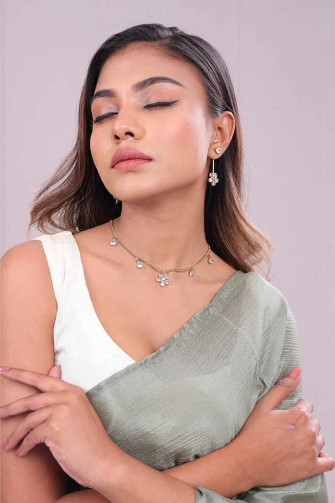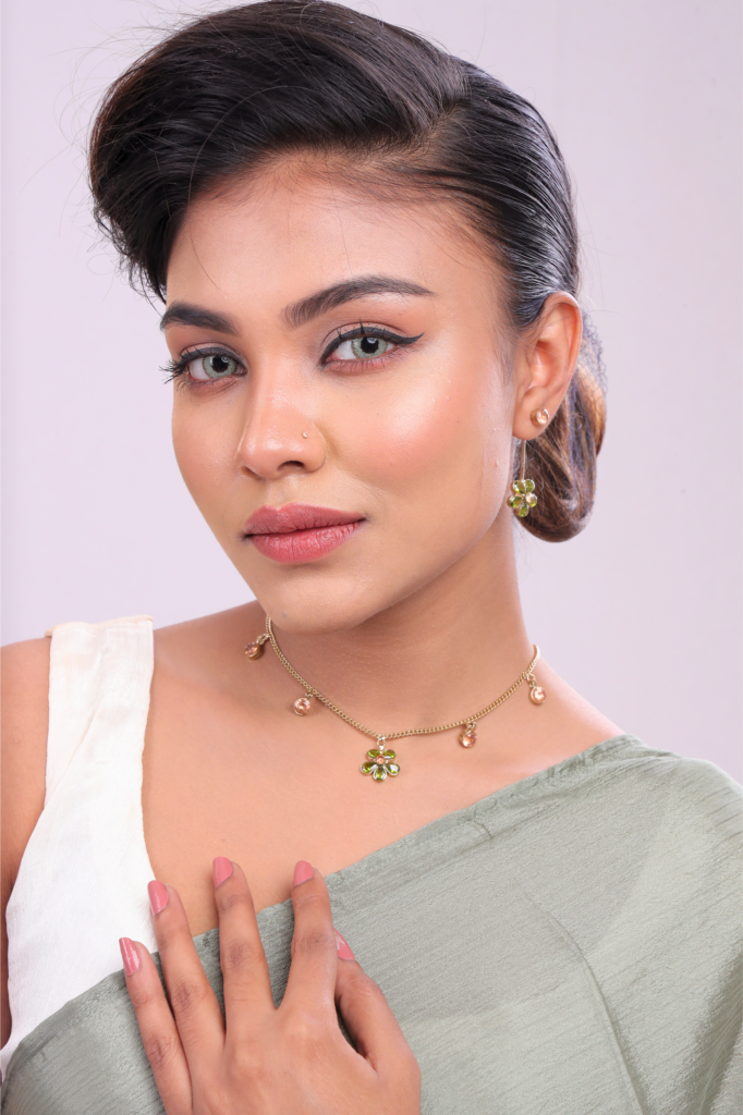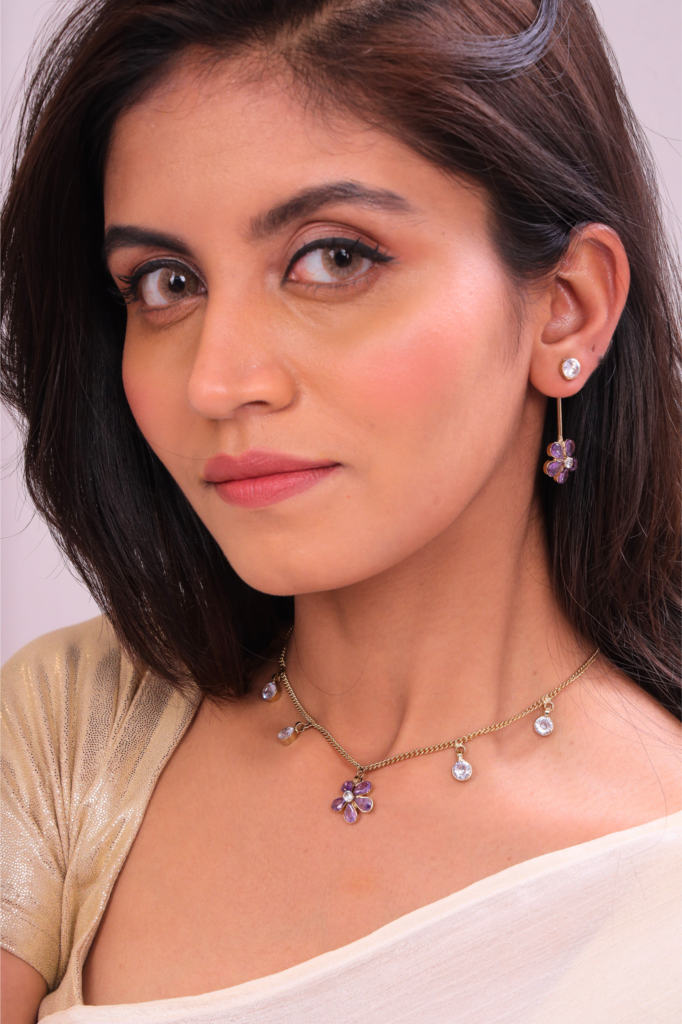 floral theme light & sophisticated neckpiece & earrings set with adjustable length