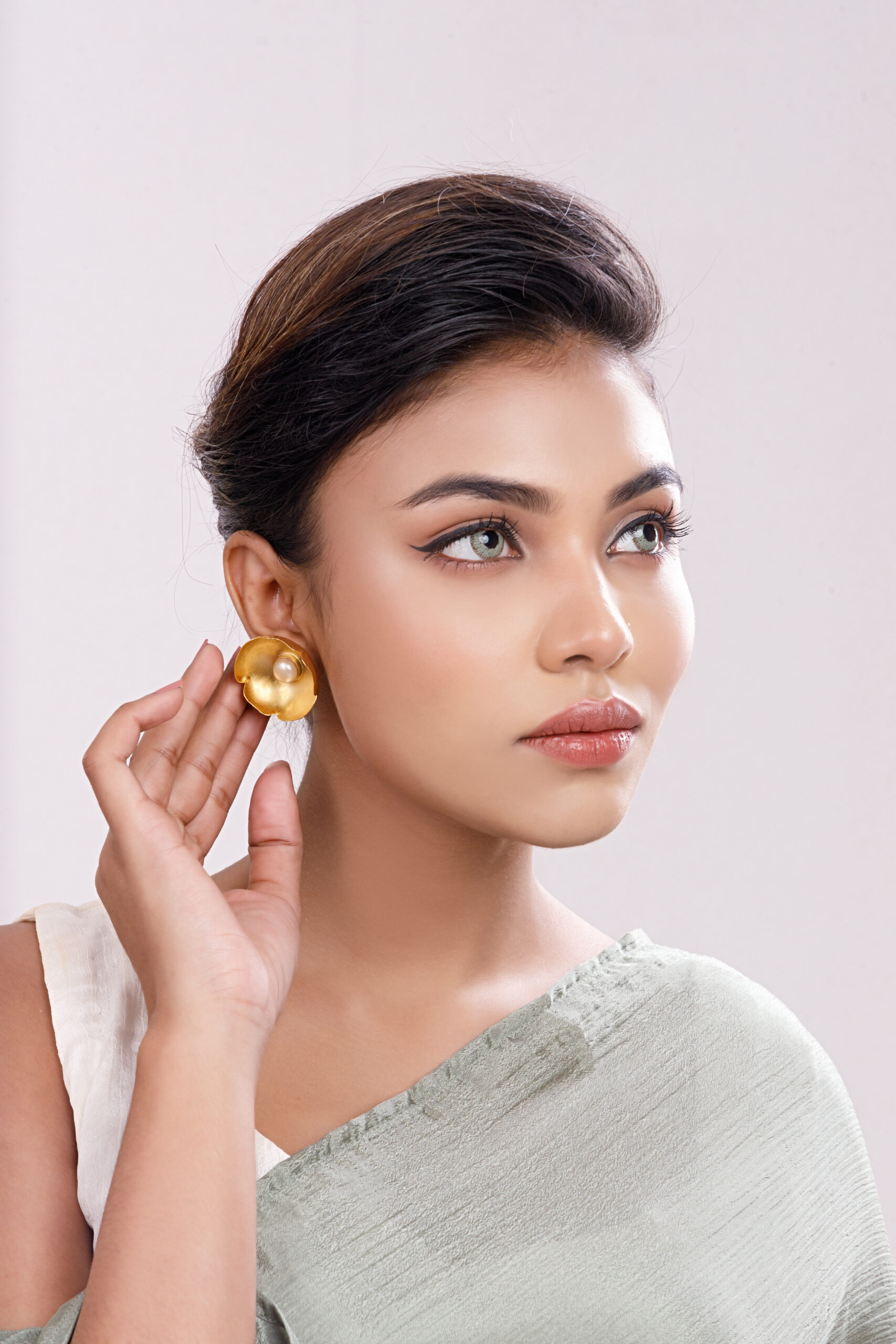 Matte gold-plated disc earrings featuring delicate center pearl